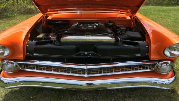 1955 Ford Mainline Complete frame off restoration (no miles on car, 26,000 klms on motor) Air Conditioning Power rack and pinion steering Power disc brakes Aluminum rad Stainless steel fuel tank with Aeromotive in tank fuel pump and regulator New bumpers New grill All new tinted glass New door handles, door rubbers and trunk rubbers Custom dash Complete new interior (Black with orange stitching)