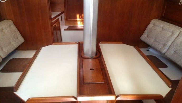 Location - Kingston, ON The Bayfield 29 has a full keel, cutter rig (Jib and Staysail), a shallow draft, and a built-in bowsprit (complete with stylized wooden trail boards on either side of its bow). She is an out-and-out cruising boat and regarded as capable of offshore passages. A unique feature of the Bayfield 29 is that she has no V-berth, which, on some boats, can be cramped and difficult to get in and out of. Instead, the Bayfield 29 has a huge and comfortable head where the V-berth is normally found. She does, however, have two quarter berths, as well as two berths in main cabin, one of which converts into a double. The Bayfield 29’s cabin is wide open, with built-in wooden panels which slide up from the galley counter and the chart table (a nicely executed idea) can be used to divide the living space into two areas. This Bayfield 29 has unique tall-mast option, with mast and all rigging for Bayfield 32′ as purchased at the Toronto Boat Show by the first owner. Currently on her third owner, she is a well maintained late model Bayfield with a clean Yanmar diesel. Regarded by some as having the perfect interior layout for a pocket cruiser. This is a very solidly built, sea friendly boat. With auto-pilot installed single-handed easily. Ideal for a couple or young family. Description