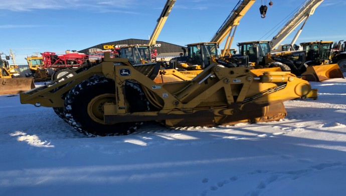 2003 Deere 1814E Pull Type Hydraulic Ejector Scraper for sale! - 18 Cu Yd Capacity - 14’ Wide Cut - 20.5R25 Tires x 6 - Hydraulic Ejector - Plumbed for rear Hydraulics so you could pull a second pan in tandem with this one! Very nice shape! Ready to work! $89,500.00 Call Jordan anytime 403-627-9300. Pincher Creek, AB.