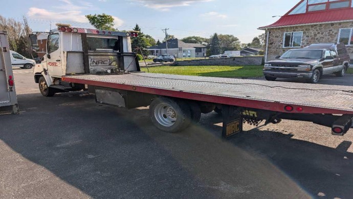 Rapport Véhicule SWIFT (non accidenté), Inspection faite en septembre 2025 valide jusqu'au sept 2026, en 2025 conduite refaite au complet (Kings Pins, machinage, bushings) coût $6,600, en 2020 embrayage refaite (clutch, bearings), plateforme robuste 19', 108 po largeur, remorquage légers et moyen, essieu avant 5,440kg, essieu arrière 9,530kg, PNBV 14,950kg, pneus 225 70R19.5, sangles de remorquage et si l'acheteur désire avoir en option, un capot plus récent et j'ai un set de pneus (6)en bon état disponible