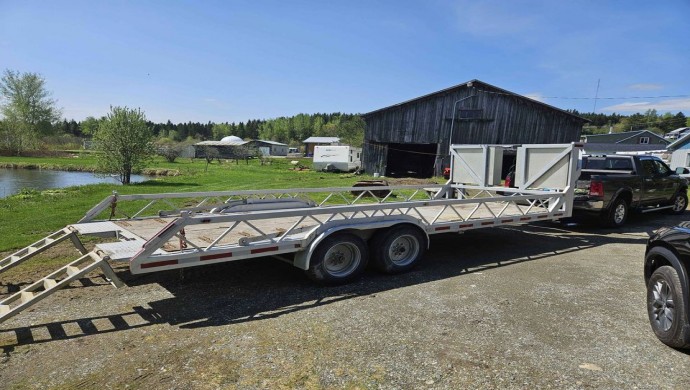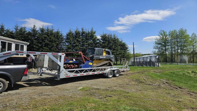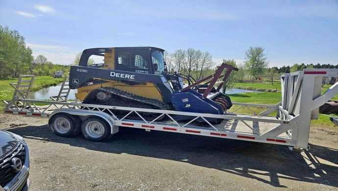 Chargeur sur chenilles 3211 heures avec buket et broyeur forestier. Trailer gooseneck 20p long plus attaché 83 int de large 20000 lbs 2 essieux de 10000 lbs, tilte pour faciliter l embarquement. Le tout en très bon état. Peux vendre séparément mais je ne peux pas vendre le traileur si le chargeur n’est pas vendu.