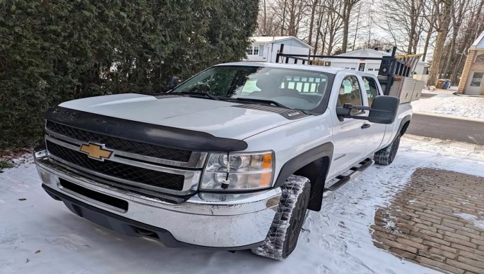 Pneus et tapis d'hiver inclus. Pick-up Chevrolet Silverado 2013 (2500 HD). J'ai acheté ce camion d’un concessionnaire en juin 2024 pour ma compagnie. Il a été bien entretenu, en parfait état. Propre à l'intérieur comme à l'extérieur. Seulement une égratignure sur le camion en arrière côté passager. Pneus et tapis d’hiver inclus. Inclus également le coffre en aluminium pour outils et rack en acier, Boite 8 Pieds neuf (cela vaut très cher ! ;) ) Jean Déziel PRIX $ 20,000