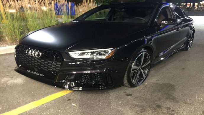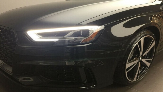 Audi RS3 2018 Noir Panthère à Effet Cristallin L5 2.5L turbo DACT 20 soupapes 400 cv @ 5850 rpm Torque (lb-ft @ rpm) 354 Poids à vide 1630 km Taille des pneus : Avant: 255/30 R19, arrière: 235/35 R19 Boîte de vitesses automatique à 7 rapports avec mode manuel Freins en céramique Suspension Sport RS fixe Siège Sport RS Ensemble Audi Sport Ensemble Technologie Ensemble Optique Noire Système d'échappement RS sport au fini noir Système de son Bang and Olufsen 10 haut-parleurs Régulateur de vitesse adaptatif avec fonction Stop-and-go