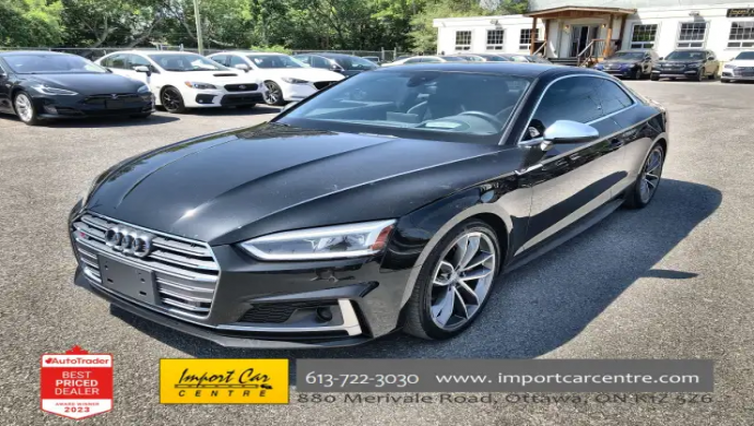 *** 2023 AUTOTRADER BEST PRICED DEALER AWARD 2023 * CARGURUS TOP RATED DEALER 2023 * ACCIDENT FREE * ONE OWNER * SMETANA APPROVED *** In stock and ready for immediate delivery!! In our humble opinion, the Audi S5 has one of the nicest lines in a coupe found on the roadways!! Finished in Brilliant Black with gorgeous matching Black Fine Nappa leather with Rock Gray diamond stitching, 354 horses with 369 foot pounds of torque, 19" alloy wheels, Bang and Olufsen sound system navigation, Audi virtual cockpit, 2 stage driver's seat memory, 360 camera, backup camera, paddle shifters, sport seats, sport steering wheel, carbon atlas trim, Audi side assist, Audi drive select, start/stop, traction control, park distance control, heated seats, adaptive cruise control, push start button, proximity key, power folding mirrors, panoramic roof, heads up display, speed warning, parking aid, distance warning, traffic jam assist, efficiency assist, Audi Pre Sense, Audi Active Lane Assist, rain sensors all compliment this stunning 2018 Audi S5 Technik with Advanced Driver's Assistance package. Perfection and beyond!!Home of the Platinum up to 240,000kms warranty and financing is always available O.A.C Import Car Centre, proudly serving the Ottawa and surrounding area for over 42 years. Come down and experience Import Car Centre for yourself and see just why our customers are so happy! #importcarcentre #smetanaapproved #iccs