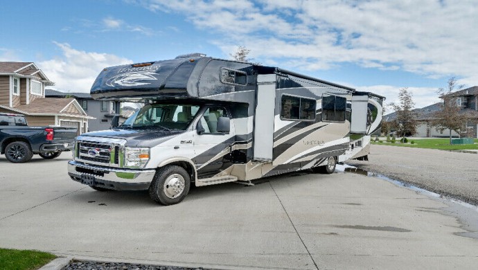 Check out this Leprechaun 319MB motorhome class C, purchase it, and be out on the road to your next adventure in no time! You will love having this rear bedroom, there is plenty of storage for your things plus a few extras, and you have to walk through the bathroom to get to it, so the bathroom is close by for convenience. If it is a nice day outside, put up the 21' awning and enjoy some shade while being in the great outdoors. With a convenient outside fridge for those cold drink’s. Two Tone Bucket seats fully reclining and swivel, dash air conditioning, air bags, power mirrors and windows, wood grain dash with extra storage compartments, removable table between the seats, touch screen entertainment/ radio, back up camera with side camera’s when turning. Two lazy boy style entertainment reclining chairs with center console, Gas fire place, Entertainment System, Retractable T/V. 3 Burner stove with oven, Convector Microwave Oven, 2 Door refrigerator, Extractor fan, Double sink. Full size Queen Bed with Serta mattress, lot’s of cabinet space, wall mounted T/V . Toilet, Sink, Shower, Outside Shower, On demand Water Pump, 6 Gallon Water Heater. Full Body Paint (Won’t Fade in the sun) 21 ft Awning, Entertainment Center with LCD T/V and Speakers, Outside Fridge.