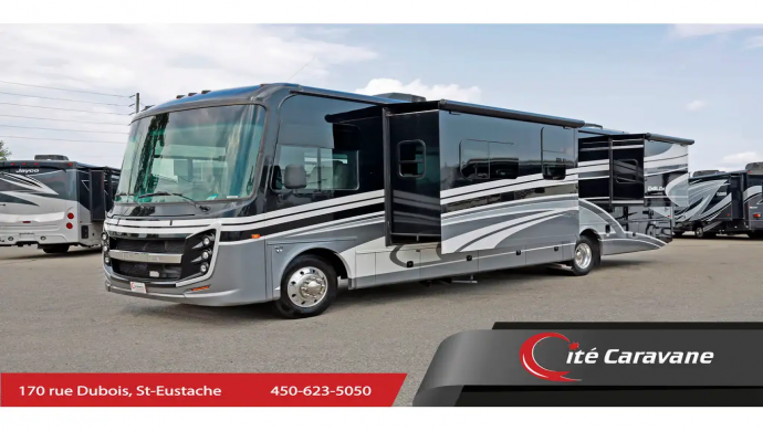Entegra Coach Emblem 36H The Entegra Coach Emblem is built with a residential feel will have you longing for your next adventure. This beautiful RV features a king size bed and a comfortable, spacious layout. This amazing RV boasts Customer Value Package which features a 5500 Watt Onan generator, 50 amp service, automatic hydraulic leveling jacks, 3 camera monitoring system, electric awning with LED lights, exterior entertainment center, frameless windows, infotainment center, LED TV in living room, roller shades, slideout toppers and solid surface kitchen and bathroom countertops. Optional equipment includes a front overhead bunk with 750-pound rating, induction cooktop , washer and dryer prep. The Emblem's impressive list of standard features that truly set it apart from the competition include Entegra's unparalleled 2 year warranty, lockable slam latch storage compartments, one-piece fiberglass front and rear caps, panoramic windshield with power shade, 6-way power driver's seat, stainless convection microwave, seamless crowned fiberglass roof, 2000 watt inverter, ball-bearing drawer guides, large residential refrigerator,, large shower and much more. www.citecaravane.com 450-623-5050 170 Rue dubois St-eustache !