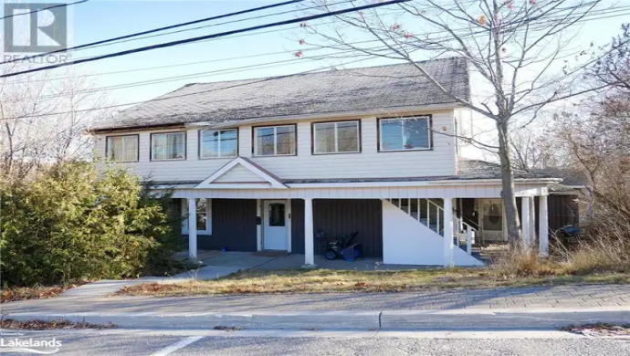 ATTENTION Investors and Developers! This Triplex sits on over 1/2 an acre (0.518 acres) in the Downtown area of Parry Sound! Approximately 2/3 of the property is level, empty and cleared. The Triplex consists of a large main level 2 bedroom, 2 bathroom unit that is approximately 1248 sq' and has side and front exits. The upper level is accessed by outside stairs leading to 2 separate 1 bedroom units. All units a currently tenanted with rents as follows: Main level $1100 + hydro, first upper unit $750 + hydro, second upper unit $700 + hydro. Seller pays the heat (natural gas furnace). The main level unit has laundry but the 2 upper units do not have laundry. There is a detached double garage (not being used) and a large storage barn/structure at the back of the garage. There are 2 parking spaces in front of the garage and a driveway at the back of the building that could fit 4 more cars. All structures are in rough shape and require TLC. Tenants would like to stay. This property could have a lot of potential, more than the existing Triplex use. With the C1 (Commercial) zoning and being a large 0.518 acre lot in the Downtown area, there may be the opportunity to create more residential units or other income earning options! Note: all inside photos are only of the main level Apt #1. Note: Access into the basement utility room is through the main level unit. All expense numbers are stated as received from the Seller and are not verified.