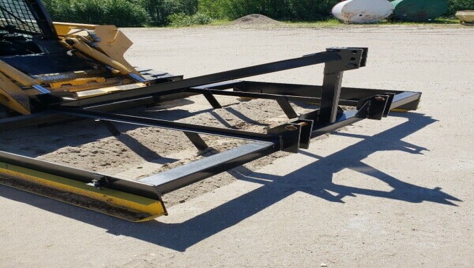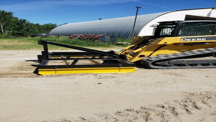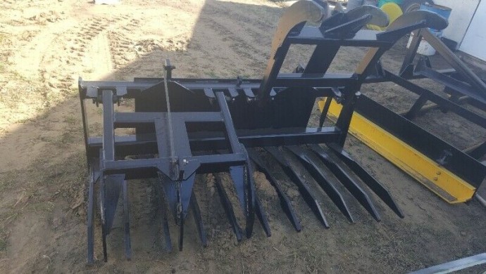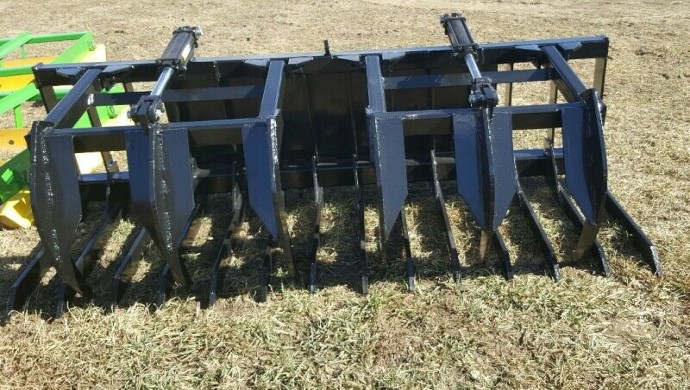 Land planes, grapples, tree pullers, pallet forks, blades, buckets, tree scoops.