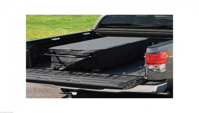 Fits in a 6' - 8' bed of a standard pick-up truck, cast iron handles rest on the rails