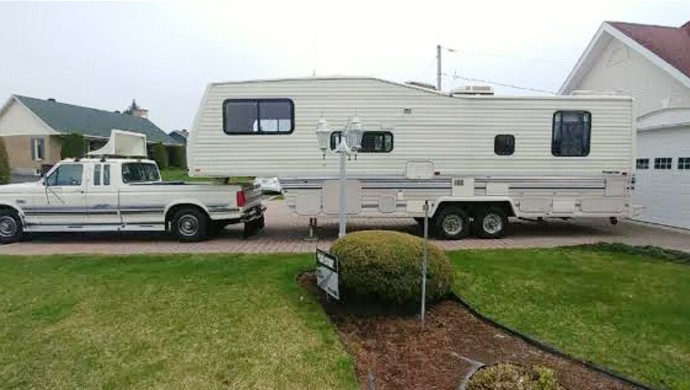 Camion et fiftweel comme neuf condition hors pair peinture du camion original blanc colonial moteur 7.5 à essence désire vendre Camion et Fiftweel couche 6 personnes pour plus d'information : Claude 819 472 -1235 prix 20,950