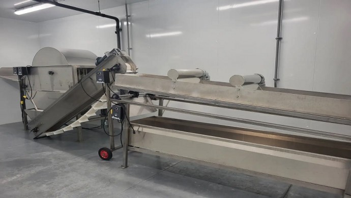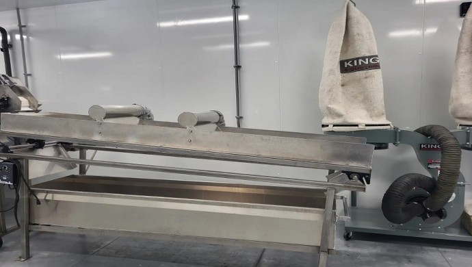 Équipement pour conditionner les petits fruits ex : argousiers, camerises, bleuets, aronia, amélanche Fabrication alimentaire en Stainless 120 volts, Ensemble complet agrafeuse / batteuse avec convoyeur et crible vibrant plus aspiration avec blower avec 2200 CFM