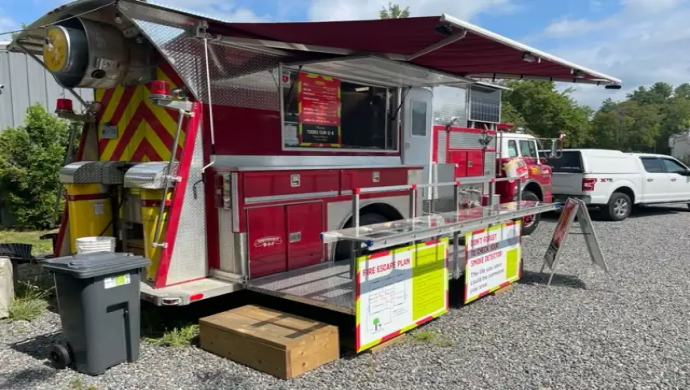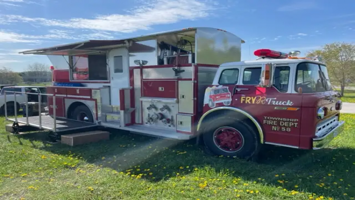 1987 Ford C8000 Retired Fire Truck converted into a food truck. TSSA and ESA certified. Equipped with 2 50lbs deep fryers, a 24" flat top griddle, a 27" refridgerated sandwich table, a 30" Samsung fridge/freezer, a 24" convertable fridge to freezer, 3 100lbs propane tanks, 32 gallon fresh water tank, 35 gallon grey water tank, Honda 7000W generator, a 2 basin sink plus seperate hand wash sink, crank out awning. Truck is in service now at our base location in Bracebridge where it attends multiple events in the area. Truck is yelow sticker every year and has only 68,000 km on it. Asking 95,000.00 OBO, Willing to deliver