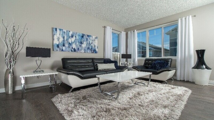 SHOW HOME - OPTION 1 # 74 , 13139 – 205 St. NW - 3 Storey - 1396 s.f. Photos : Interior Colors are BLACK , WHITE & GREY INCLUDES : • 3 Bdrm - 2.5 Baths • Extra Large Tandem Garage Town Home • 6 pc. Appl. Package : 4 Pc. Stainless Steel in Kitchen - 2 Pc. White Front Load W & D • 7 “ Plank Laminate Flooring & Cermaic Tile throughout Entire Home • Drapery Rods to remain in Home • Garage w O.H. Door Opener and Keyless Entry Pad NOT INCLUDED : • All Furnishings , Window Draperies and Decorative Items TOTAL : $ 300,761.00 Rent Back $ 1400 / mth