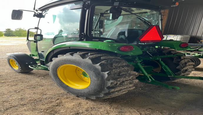 mfwd, hydro, cab, A/C, radio, cab mirrors, rear remotes, rear wiper, front hitch, front PTO, like new, factory warranty until July 2026