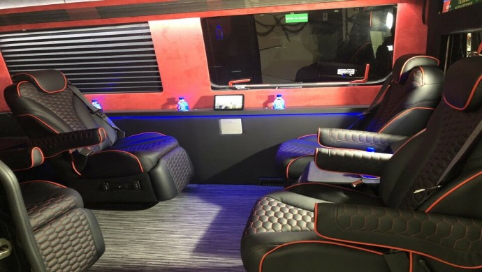 Brand New Mercedes Benz Sprinter Travel JetVan Luxury. 43” Apple TV’s, Apple TV, Amazon Fire TV, Alexa Voice Control, Powered Seats, Powered Sofa, privacy dividers, JL Audio Sound System and more.