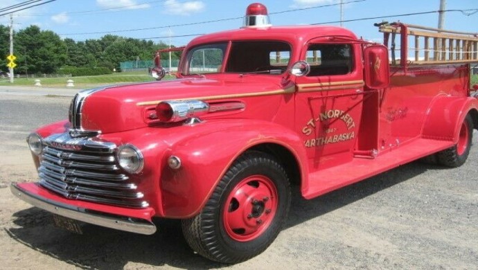 CAMION POMPIER ,,RARE CANADIEN,,,1947 MERCURY 3 TON,(THIBO),stepsidelongue ,7,794 mil,moteur 8cyl flat head,4vit original,restauré complet .échelle de bois ,sirène,extincteur,gaffe ligne,couteau ligne elec,lumières hallogènes,pompe et plus avoir,,,,collectionneur