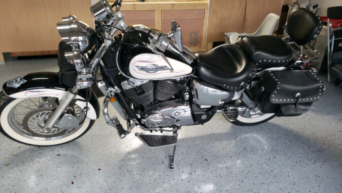 Honda Shadow 1100cc limited edition cruiser motorcycle. Low kilo-meter Has the look and sound of a Harley but the performance of a Honda. Features a lush cushioned seat for the rider and passenger; pinstripe graphics and a custom graphic of a wolf head on the front fender. A great bike to own and cruise with your favourite passenger.