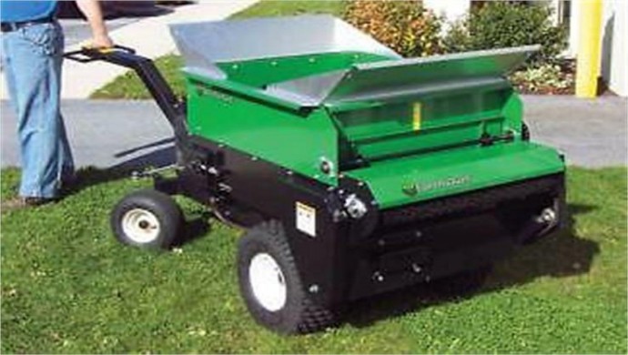 This MultiSpread™ Model 220 is a two-wheel ground drive model. This topdresser utilizes the "widespread beater" system and will spread wet or dry materials. The MultiSpread™ 220 can be pulled with a lawn and garden tractor, ATV, utility cart, compact diesel tractor, small articulated tractors, and zero-turn mowers.