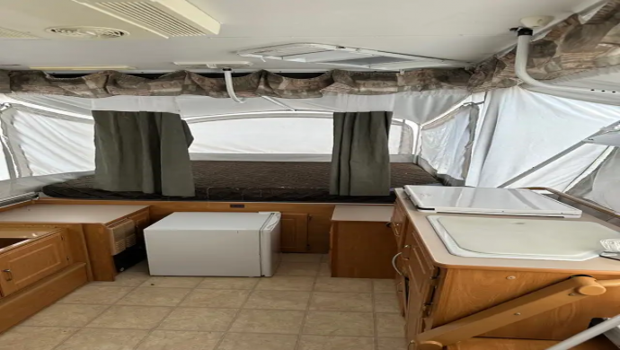 About Coleman Pop Up Trailer Extra large design Kitchen pop out Sliding pop out for dinning table 2 queen size beds Stored indoors for the winter