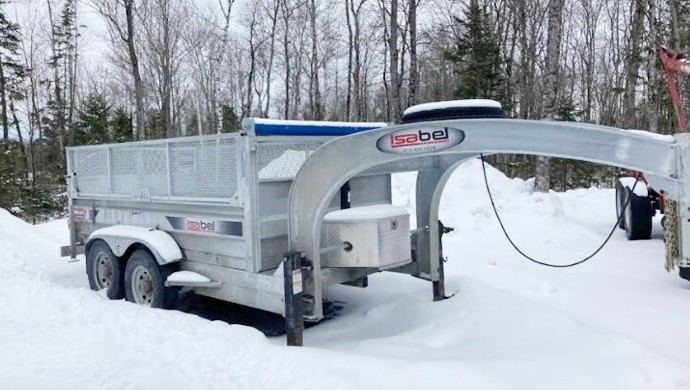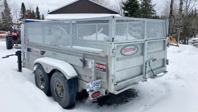 REMORQUE À BASCULE DE MARQUE ISABEL COMME NEUF TRÈS PEU UTILISÉ. ATTACHE GOOSENECK. DIMENSION 6 PIEDS X 12 PIEDS