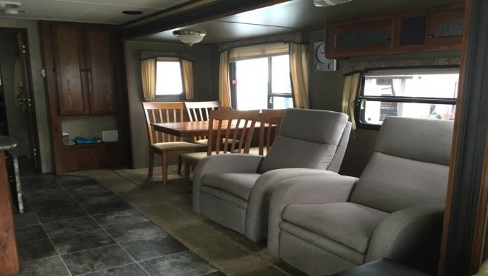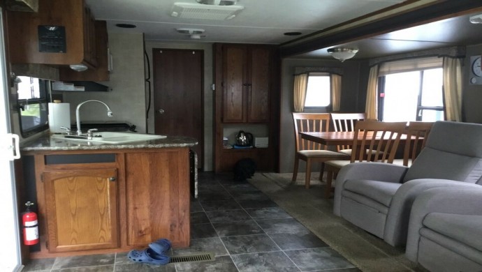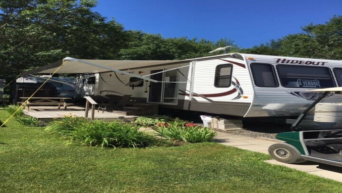 Roulotte de parc Heystone 2014, 38 pieds. Auvent électrique, balançoire 4 places, patio 8 x 28, remise en PVC 4 x 7 et bien d’autres articles.