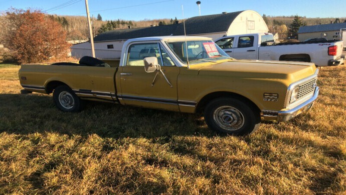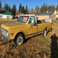 Two Classic Trucks! First, 1971 Cheyenne with 174000 miles. Idaho truck. Solid as can be. This is the kind of rebuilder that is really easy, but you can drive it as you do it. It is really cool the way it is! Original 350 was completely rebuilt 10k ago. I just rebuilt the original transmission (St Albert Transmission). New carburetor, fuel pump and exhaust. Drive it to Mexico if you like. $ 6,995 Second, 1972 GMC. Super clean one owner truck from Eastern Washington. 250 ci straight six with a 4 speed stick. Restoration would include 2 outer rockers and a fender patch ... that's it !! All maintenance recorded with plastic labels on the door ... really !! New plugs, points, wires, tires, fuel pump and valve cover gasket. I need $ 6995 for this one too. So take your pick! Call Richard 780-886-4328
