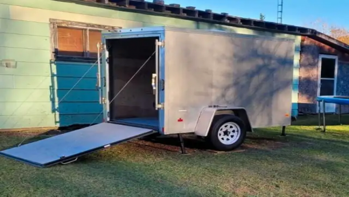 2016 bought new in fall of 2017. 5'w x 5.5'h x 8'l with 20" Vnose. Alum checker plate trim, roof vent, LED lights, heavy duty axle & tires. 2 sets of tires on rims, tire shades for sun, anti-slip flooring, wheel chuck in front, drive or walk up ramp. Undercoated, roof sealed, door & hitch locks. Was bought to carry Harley Davidson Electric Glide. Waxed every year & kept under carport. Like New!!